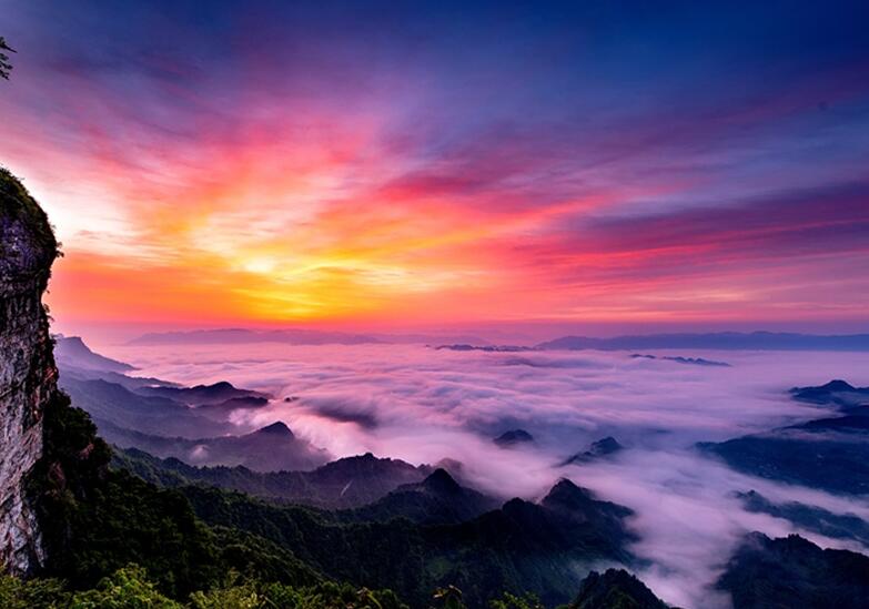 摩圍山下色,明月峽中聲。摩圍山屬于大婁山余脈,位于彭水西南部,平均海拔約1300米,最高峰官山海拔1676米;年平均氣溫14.9℃,森林覆蓋率91%,負(fù)氧離子含量8000—13000個/立方厘米。區(qū)域內(nèi)自然資源豐富、生態(tài)景觀奇特、珍稀動植物眾多,旅游資源單體33個,涵蓋8個主類、11個亞類、19個基本類型。有一線天地縫、石窟溶洞、百里石林、千仞絕壁、萬丈天坑等地質(zhì)奇觀,有云霧幻化、瑞雪飄飛、樹掛冰晶、旭日升騰、彩霞繽紛等天象麗景,有名藥山珍、奇藤異草、山花野果、千里碧海、古木參天等山林秀色,還有眾多國家重點保護(hù)野生動、植物和數(shù)百種中草藥材。