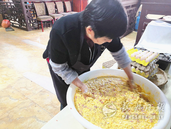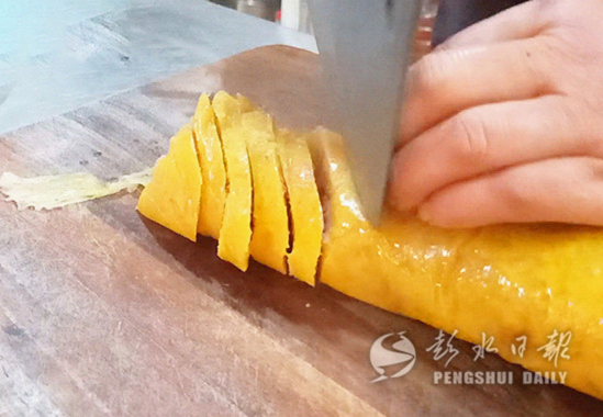 中國(guó)彭水網(wǎng)(全媒體記者 張茂玉 楊 靜 文/圖)三香,又叫包圓或卷子,是將五花肉、紅薯淀粉、土雞蛋等食材按一定比例蒸制而成。三香口感香嫩潤(rùn)滑、美味可口,營(yíng)養(yǎng)搭配合適,又因其易于保存、方便攜帶,成為了彭水人外出求學(xué)或打工時(shí)必帶的家鄉(xiāng)美食。